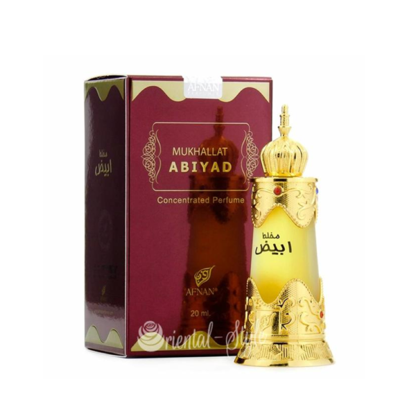 Afnan Mukhallat Abiyad oriental warm spicy, ambery and musky notes come togather in this exotic blend.