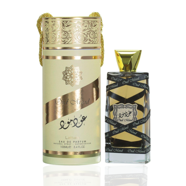 Oud Mood by Lattafa Perfumes is a fragrance for women and men. Top notes are saffron, pimento and rose; middle notes are patchouli, caramel, agarwood (oud) and floral notes; base notes are musk, incense, amber, resins and woody notes.